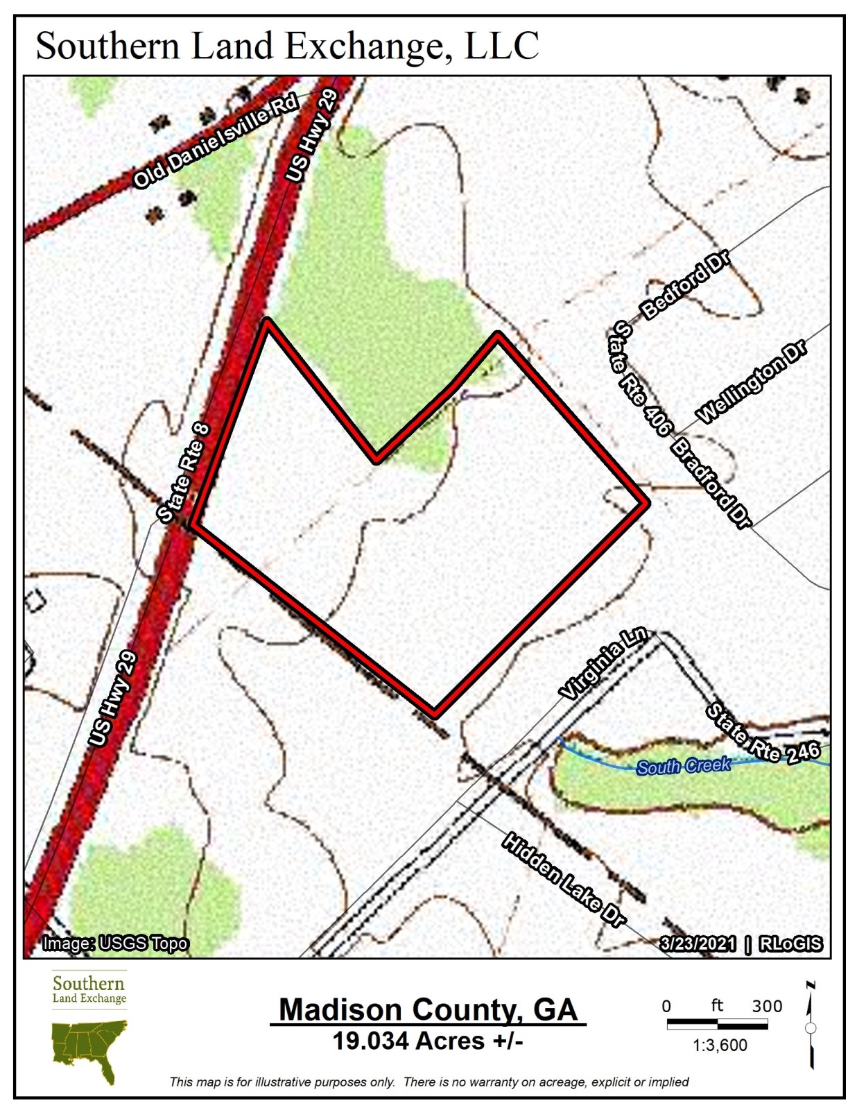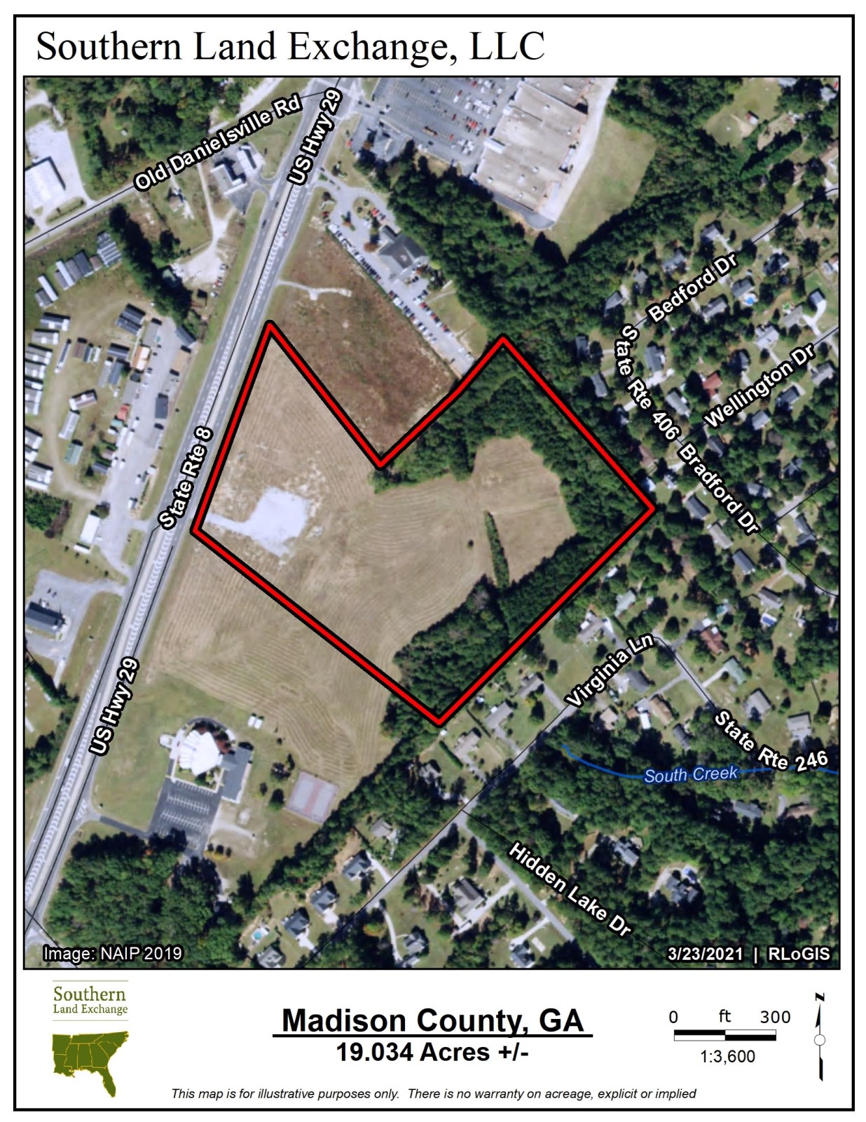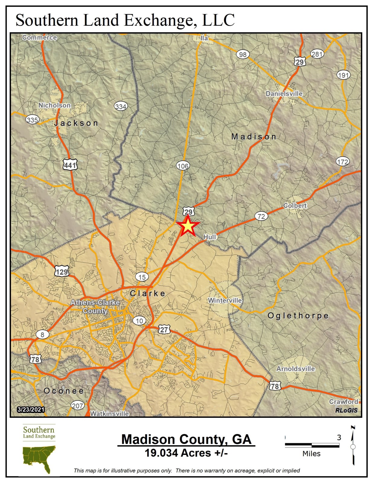 Southern Land Exchange is proud to present a new HWY 29 commercial tract consisting of 19 acres located in Madison County. Zoned Business General (B) with water and sewer available and in an area that is exploding with new development, one couldn't ask for a better set up. This incredible B zoned property sits just over the Clarke County line, positioning developers & investors to take advantage of the Athens market while doing business in Madison County. Like any great commercial property, this tract has valuable road frontage with over 600ft on Hwy 29. Situated between the Ingles in Madison County and the Kroger Marketplace in Clarke County, this property is a blank canvas ready for development. The B zoning is not something to take lightly as it is the primary commercial zoning classification in Madison County. Under B zoning, uses are as follows but not limited to: Car Dealerships, Banks, Gas Stations, Medical Clinics, Motels, Mini-Warehouses, Nursing Homes and much more. Owner will build to suit and will consider subdividing. Call Travis Ebbert for more information.