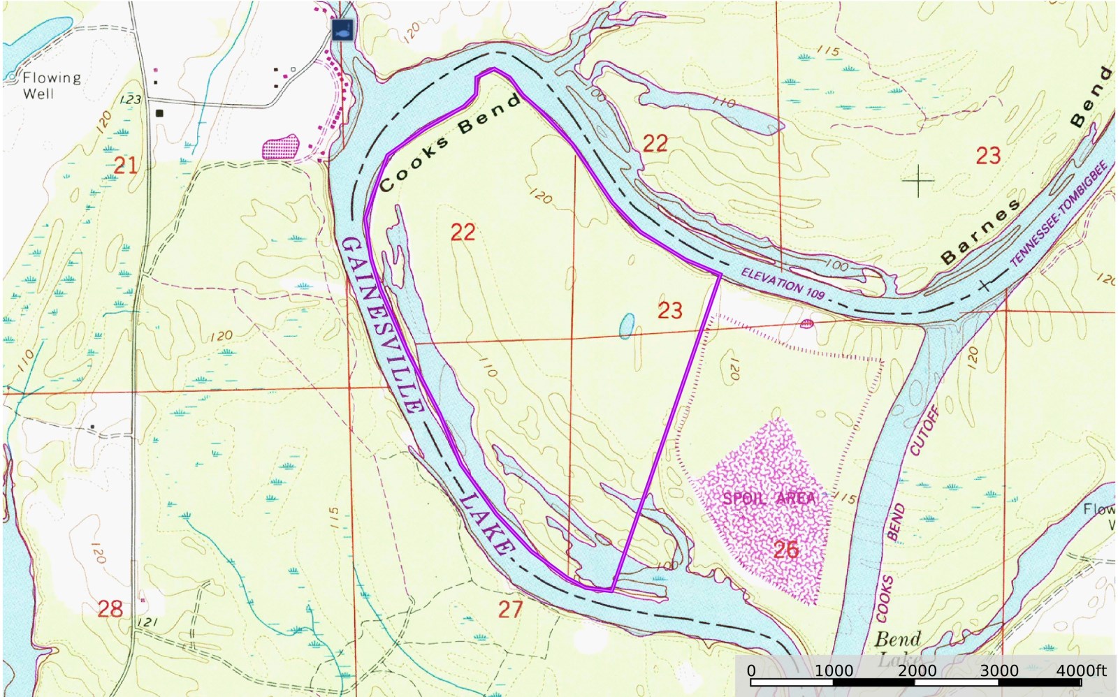 • 2.2 miles on the Tombigbee River and the cut-off + 1.6 miles of frontage on wet old river channels.