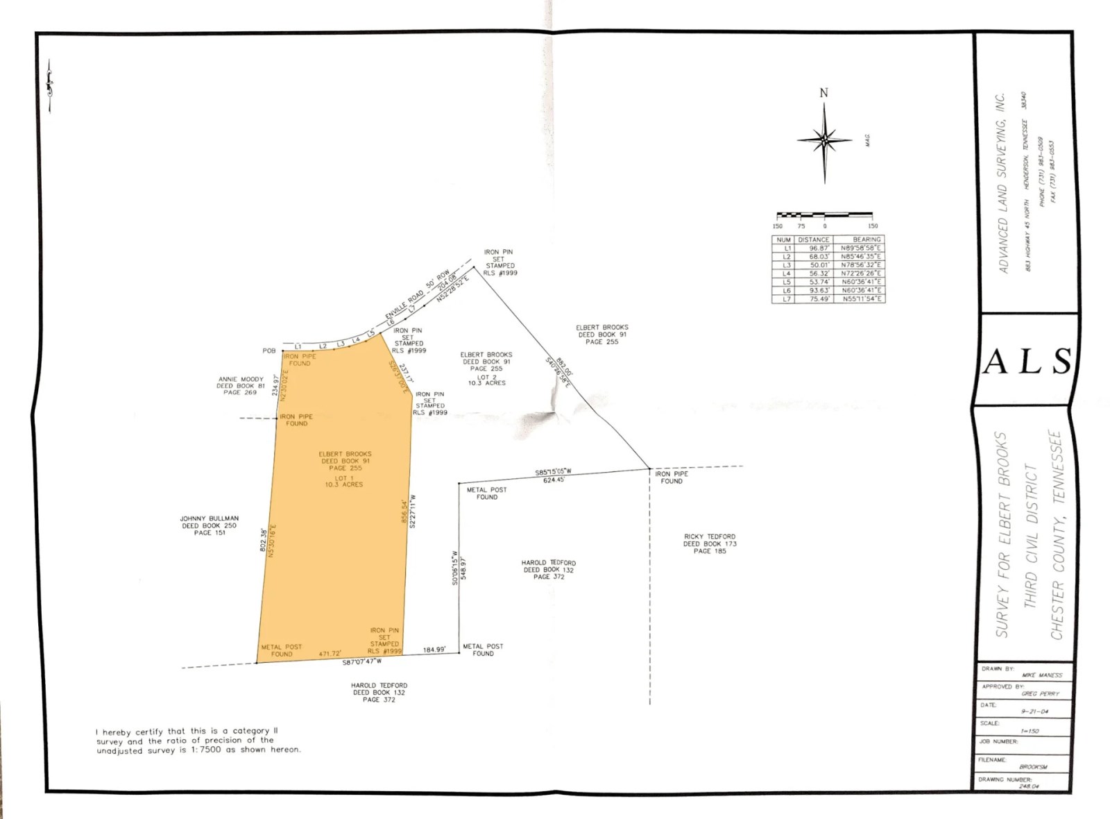 We have both full-size and electronic PDF copies of the full survey on the property and the metes and bounds to ensure accurate boundaries. Corner Stakes and Iron Pins were originally set in 2004. Electronic Plats of the Survey prepared by Advanced Land Surveying, LLC Registered Surveyors are available upon request in Pdf.