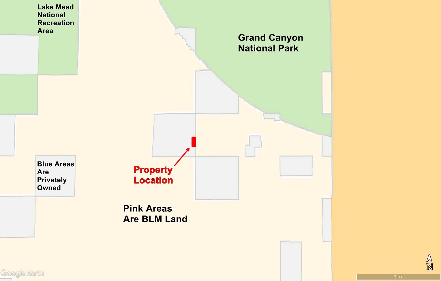 These properties are bordered on their east side by Bureau Of Land Management land. Grand Canyon National Park is less than 1 1/2 miles to the east, and the Grand Wash Cliffs are 3/4 mile to the west. The Grand Canyon itself is a little over 5.5 miles to the northeast. This is a remote, unspoiled, incredibly beautiful area.