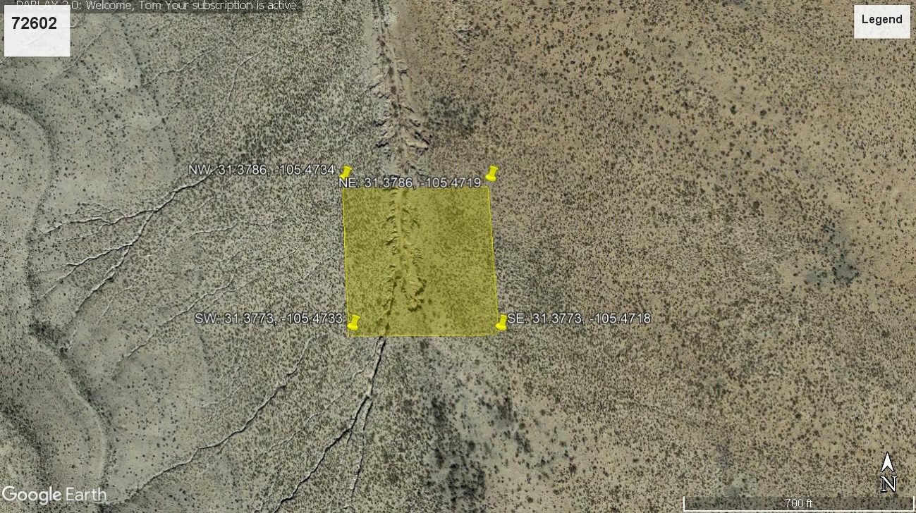 Legal Description: Gunsight Ranch Section 18, Block 71, Township 6 T & P Railway Survey, Lot 3. Being a tract of land out of Tract 9 and 10 of Section 18, Block 71, Township 6 T&P RR Co. Survey, Hudspeth County, Texas and being more particularly described as follows: Beginning: At a point 981.47 feet N 00° 33' 12” W and 1772.74 feet N 90° 00' 00” W from the Southeast corner of this Section, and also known as the northeast corner of Lot 2; Thence: N 00° 33' 12” W 475.73 feet to the northeast corner of the lot; Thence: N 90° 00' 00” W 470.21 feet to the northwest corner of the lot; Thence: S 00° 33' 12” E 475.73 feet to the southwest corner of the lot; Thence: S 90° 00' 00” E 470.21 feet to the Point of Beginning at the southeast corner of the above referenced lot and containing 5.14 acres of land, more or less. The foregoing description is based upon metes and bounds data provided by the owner, the Texas Railroad Commission, Texas Natural Resources Information System, and the Texas General Land Office, and has not been surveyed as of this date.
