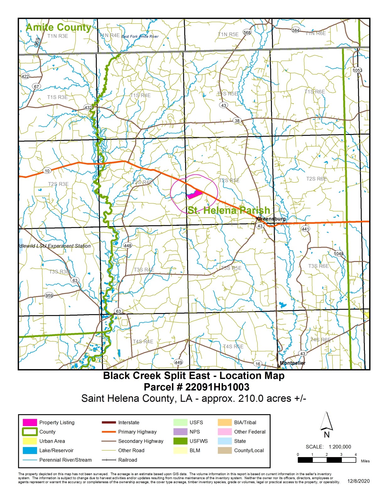 This property is known as Black Creek East. It is located about halfway between Darlington and Greensburg and the entire northern boundary is Hwy 10. The southern boundary is Willie Redding Rd. This property offers a little bit of everything from potential home or camp sites to timber investment and hunting. The timber consists of approximately 142 acres of 4 year old planted pines with the balance being an absolutely beautiful hardwood bottom along Black Creek. This tract is ready to hunt with several food plots already in place and multiple areas in the hardwoods to spend your mornings. There are 4 entrances located along Willie Redden Rd as well as 2 entrances from Hwy 10. There is a nice pipeline that crosses along the NE corner that also makes a great food plot. Power and water are accessible.