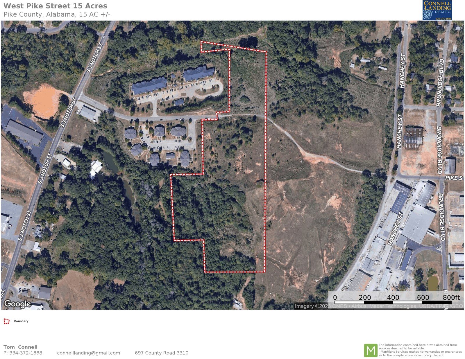 Description: This is a prime piece of commercial property with a paved road leading into the heart of these 15 acres. It is zoned heavy industrial and has infrastructure either in place or access to it. City water and electricity are available on the western boundary of West Pike Street. There is a city sewer easement in three places on this parcel. There is one on the NW corner. There is one near the SW corner and another near the gate on West Pike Street. Natural gas is available at Three Notch Street as well.