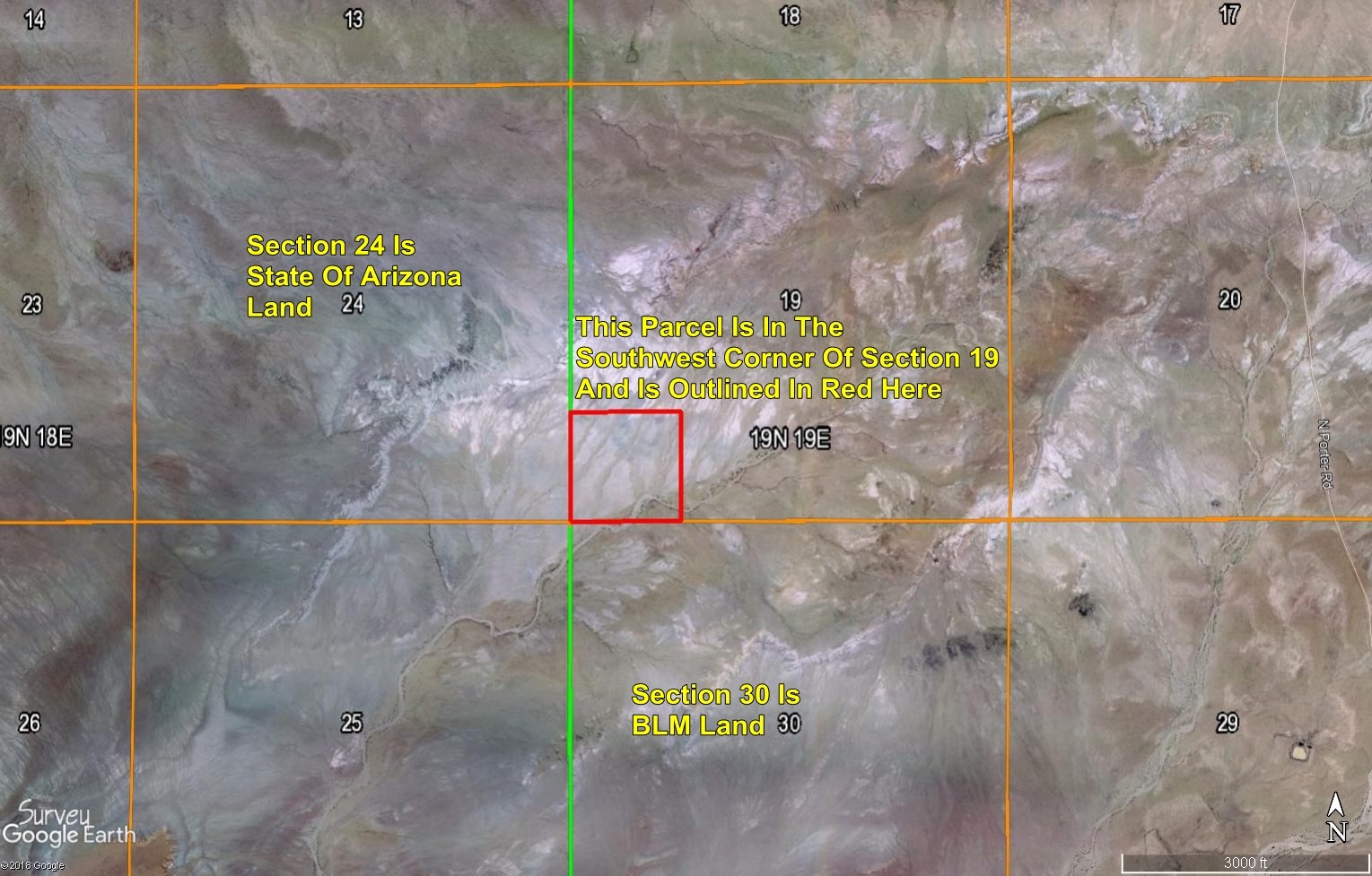 This is a huge approximately 40 acre parcel with fantastic views. A wash runs through the southeast part of the property. It's about 1 1/2 miles west of North Porter Road and a livestock fence runs along the west side of the property. You will have to do a bit of off roading to get to this property but you will own a 40 acre empire with all the beauty and privacy you could want.