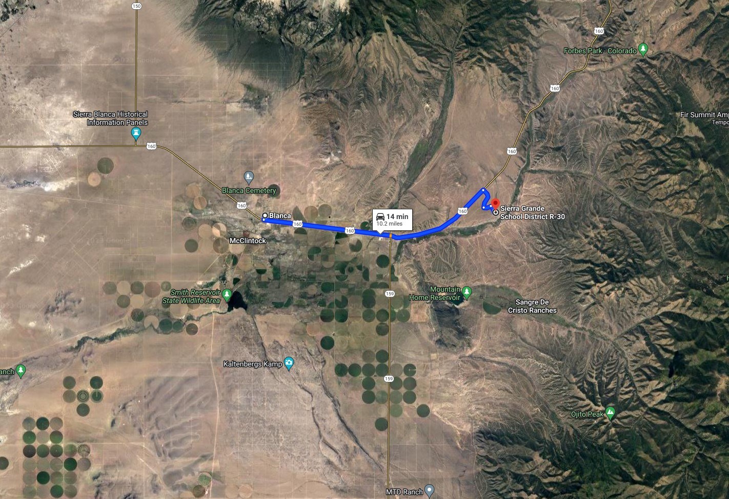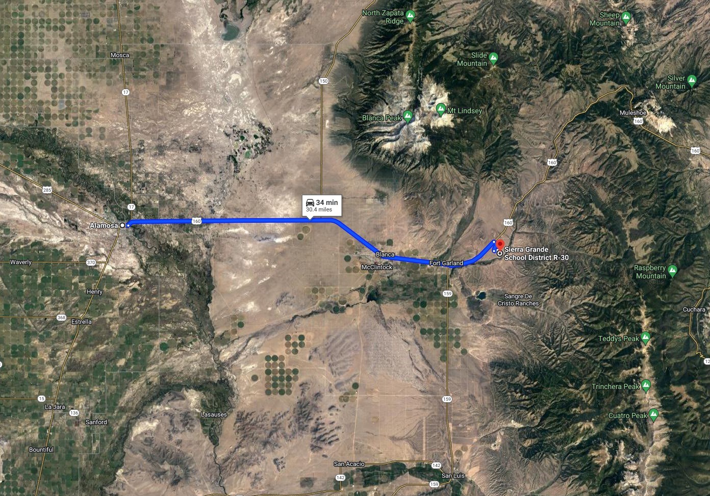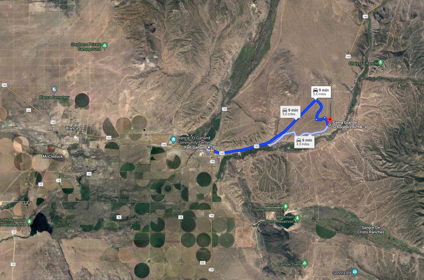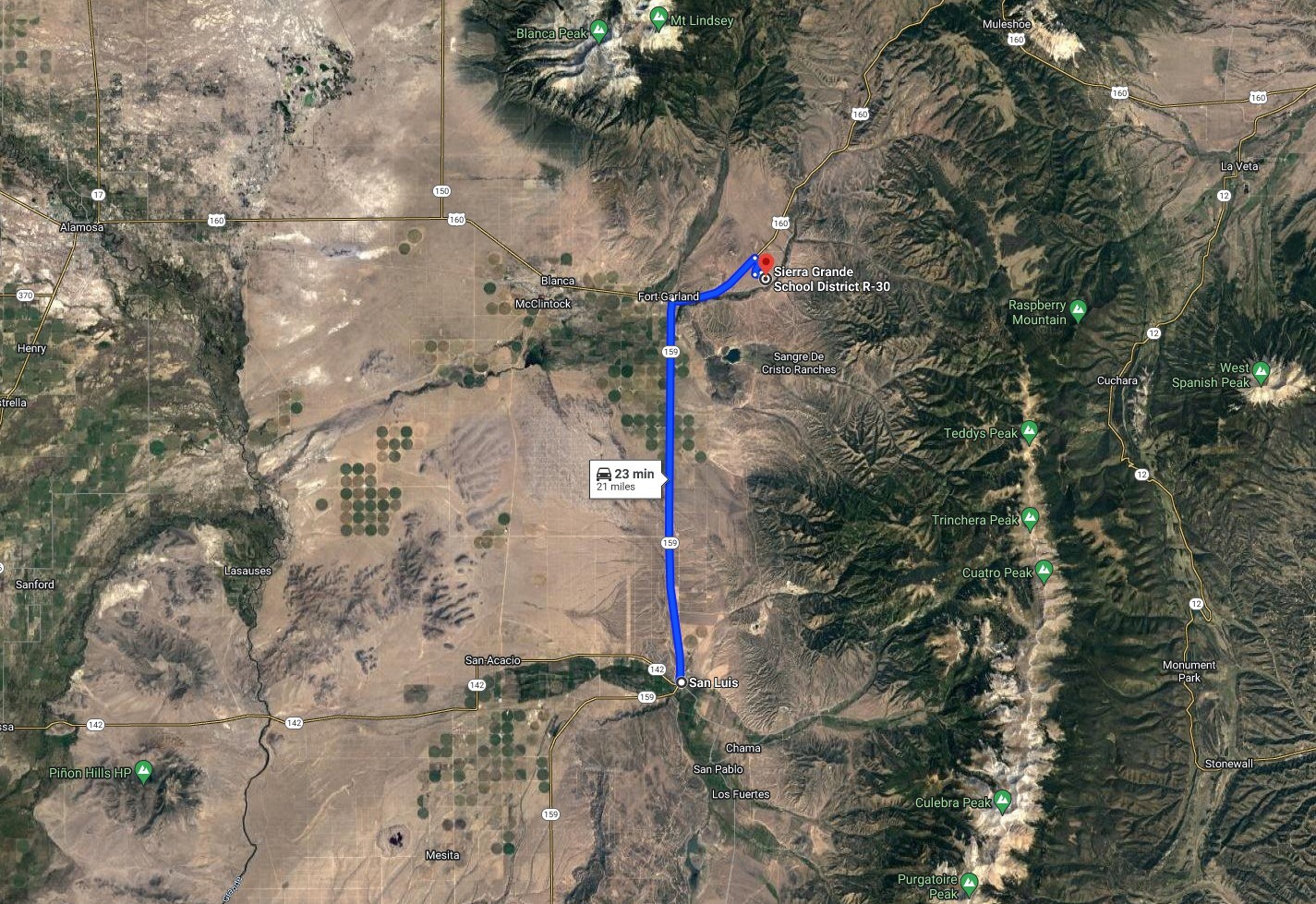 From Fort Garland, Colorado, USA to Sierra Grande School District R-30, Colorado, US: