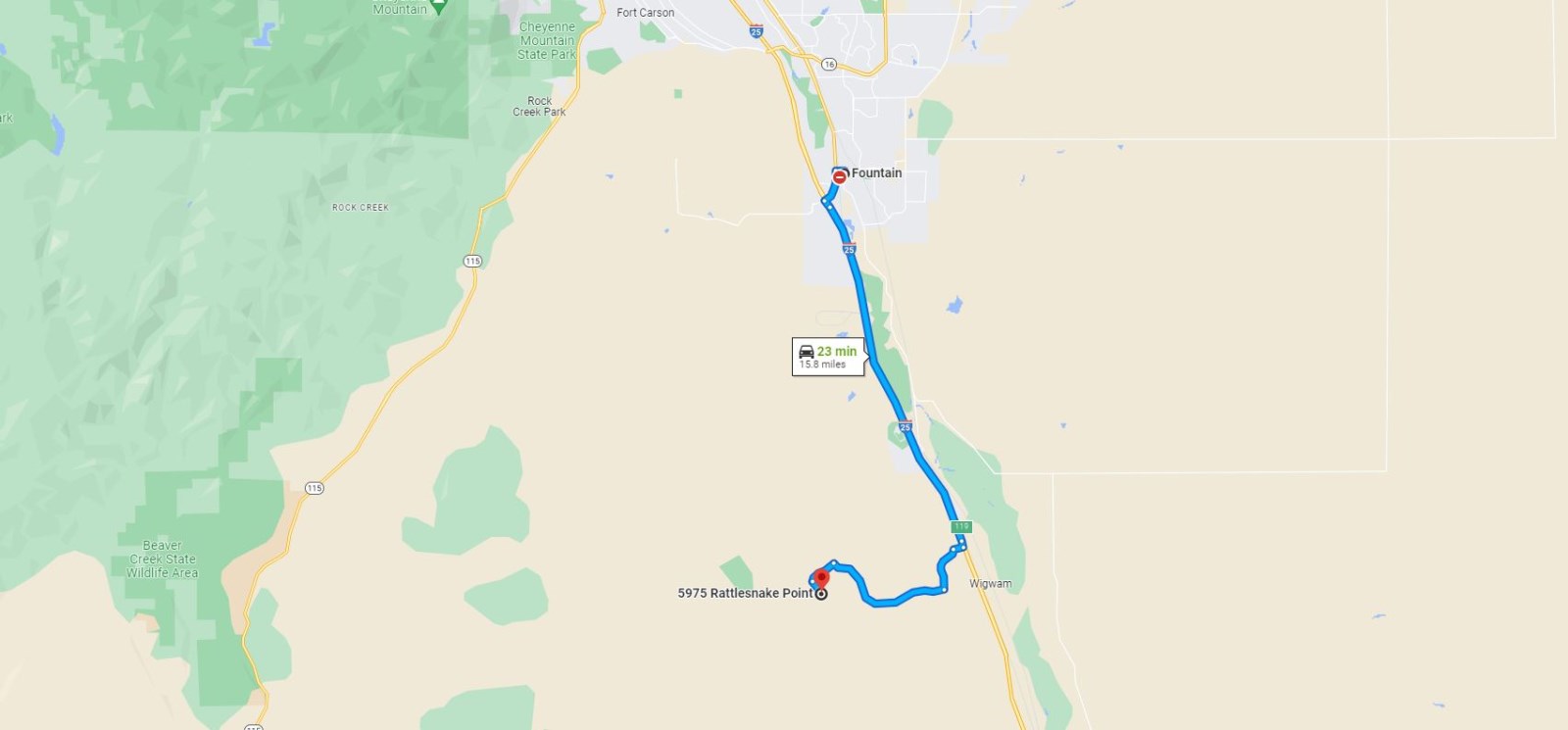 Fountain, CO 80817. This route has restricted usage or private roads.