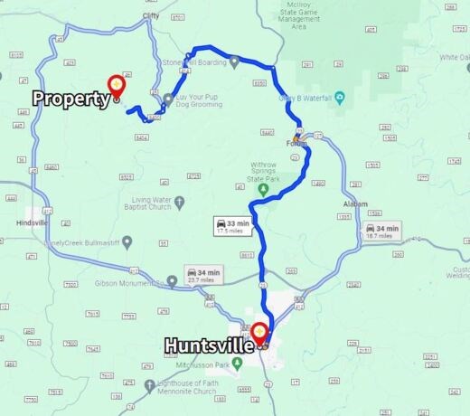 General Location: 18 miles to Huntsville & 35 miles to Fayetteville