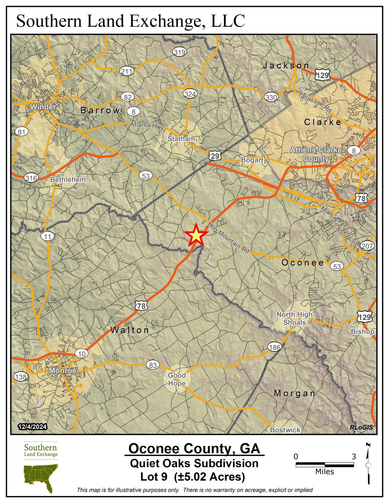 Looking for 5 beautiful acres of land with privacy in North Oconee County? Look no further, as Quiet Oaks Subdivision offers a new residential community of 14, five-acre estate lots where you can build your dream home and enjoy gorgeous sunrises and sunsets. Most lots have towering white oaks and perennial flowing creeks, while several lots also have open fescue fields for your horse and two lots share a fishpond. Quiet Oaks is conveniently located about 2 miles from the intersection of Highway 53 and US 78, where Stripling's General Store is located. Oakley Trail has streetlights, underground power to each of the lots, and the paved road is maintained by the county. Your investment will be protected with covenants that, in part, require 1 story homes to have 2,500 sq. ft. and 2 story homes to have 3,000 sq. ft. This property has easy access to Highway 316 which is about 5 miles away and it is less than 5 minutes to the new Dove Creek Elementary and Middle School. Contact Thomas Verner for more information.