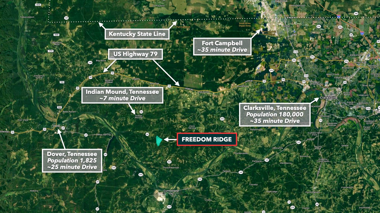 Fort Campbell is 29 miles from the Freedom Ridge and is home to the 101st Airborne. Fort Campbell Supports the 4th Largest Military Population in the Army (and the 7th Largest in the Department of Defense).