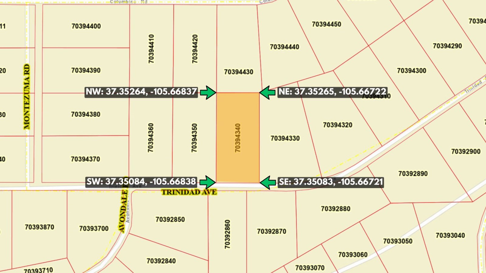 To visit this 5.10 acres land in Southern CO for sale, search Lot 5 Trinidad Ave, Blanca, Colorado, 81123 within Costilla County on your phone. When you are near the land, search “37.35084, -105.66838“ on Google Map to locate one of the corners. Contact our office for surveys (if available), county plat maps, Google Map boundaries and corners, and MapRight.