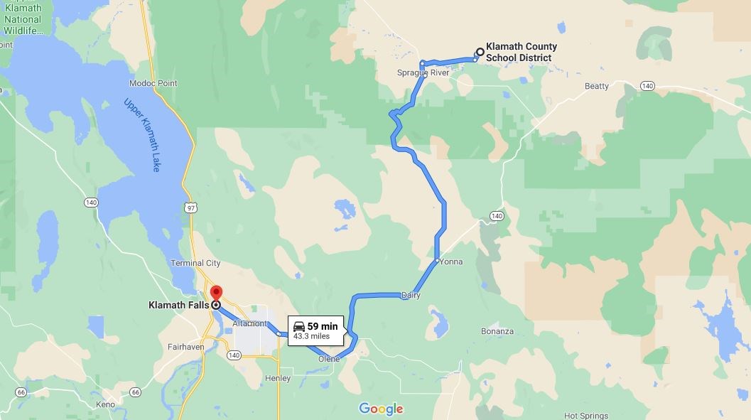 Follow OR-39 S, OR-140 E and Bliss Rd to Drews Rd