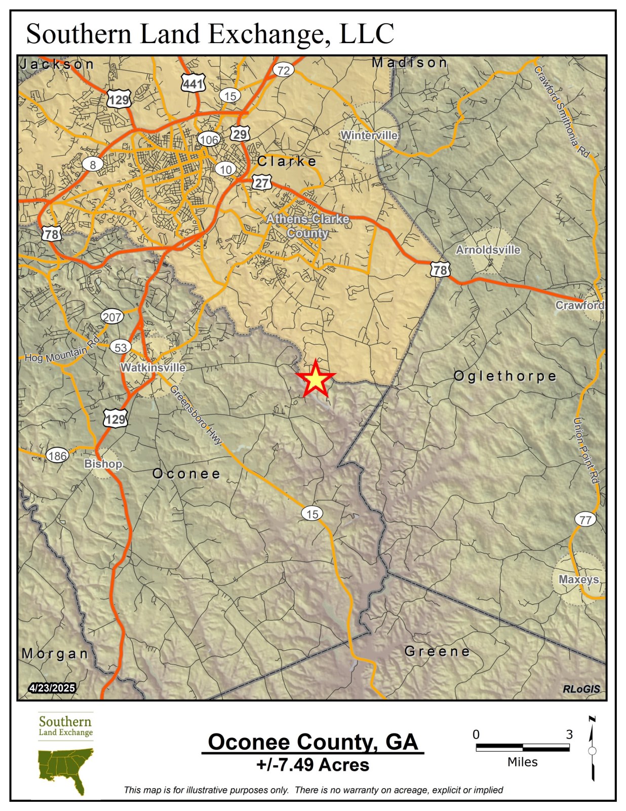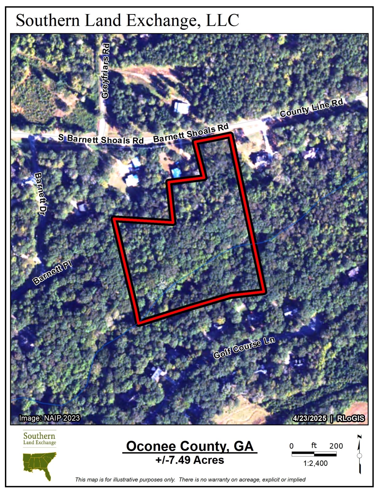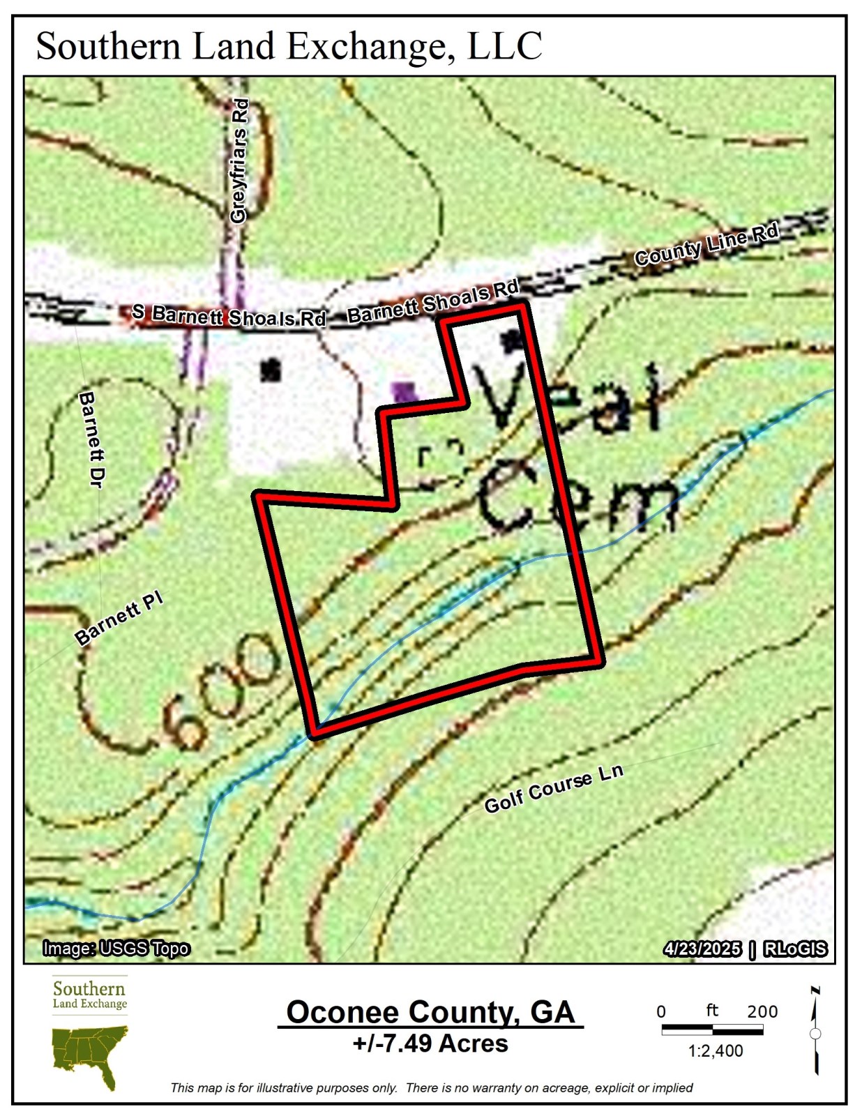 Southern Land Exchange is proud to present this 7.49 acre land lot in highly desirable Oconee County. The property is mostly wooded with a nice open area near the entrance. There is a beautiful branch off the Oconee River toward the back of the property with both sides of the branch located on the subject property. There is approximately 160 feet of paved frontage on Barnett Shoals Road. The property is conveniently located only 8 minutes from Watkinsville and only 20 minutes from downtown Athens. Something to note is that Veal Cemetery is located on the property. There are multiple potential build sites, possibility at the road or further back on the property. The topo is steep in areas, but could make for an excellent basement build. The property is priced very competitively and is possibly the best priced small acreage tract in Oconee County in the 5-10 acre range. Call Travis Ebbert for more information.