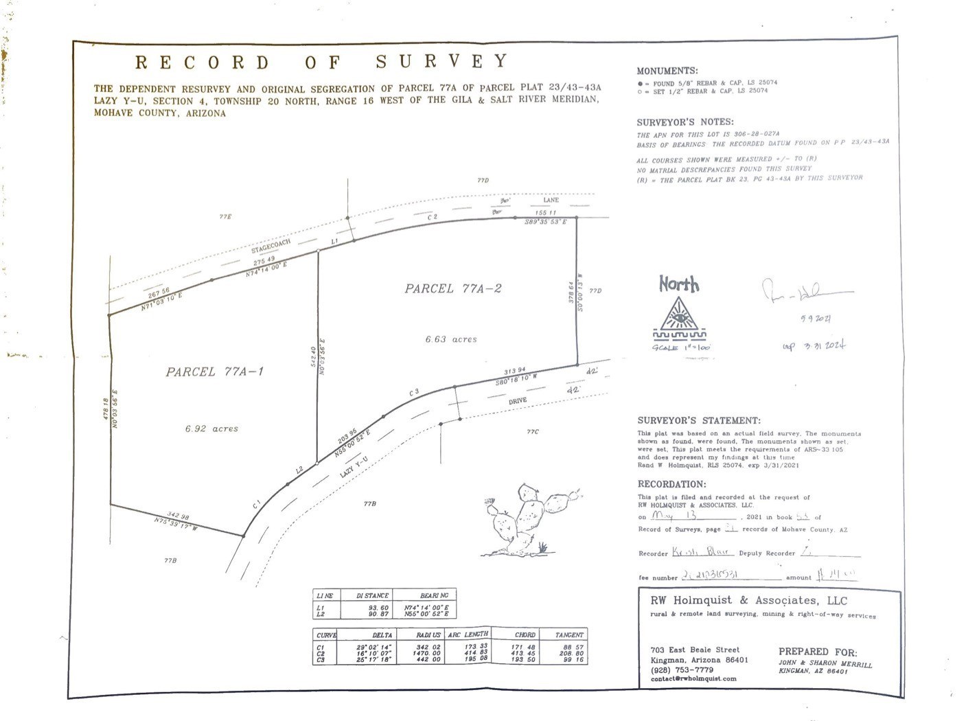 Imagine waking up each morning to unobstructed golden sunrises over the Hualapai Mountains, sipping coffee on your porch with nothing but quiet and open sky around you in the prestigious Lazy YU subdivision. This 13.5-Acre retreat offers you the best of both worlds-peaceful mountain living with all the everyday conveniences just 10 miles away in Kingman. No long drives for groceries, dinner out, or common necessities. You get the space and freedom to breathe, build, and live your dream-without giving up access to the things that matter. Power is available at the lot, roads are easy to navigate, and the land sits in a well-kept, homes-only area-no rundown trailers or eyesores, just neighbors who care with high-end, beautiful homes all around. Whether you dream of raising a family, riding horses, or finally building that custom home with a view, this land is your blank canvas. Already surveyed and eligible to split into two lots, this property offers flexibility and long-term value. Keep both or subdivide and make money off the other. Priced low to move quickly-opportunities like this don't come often.
