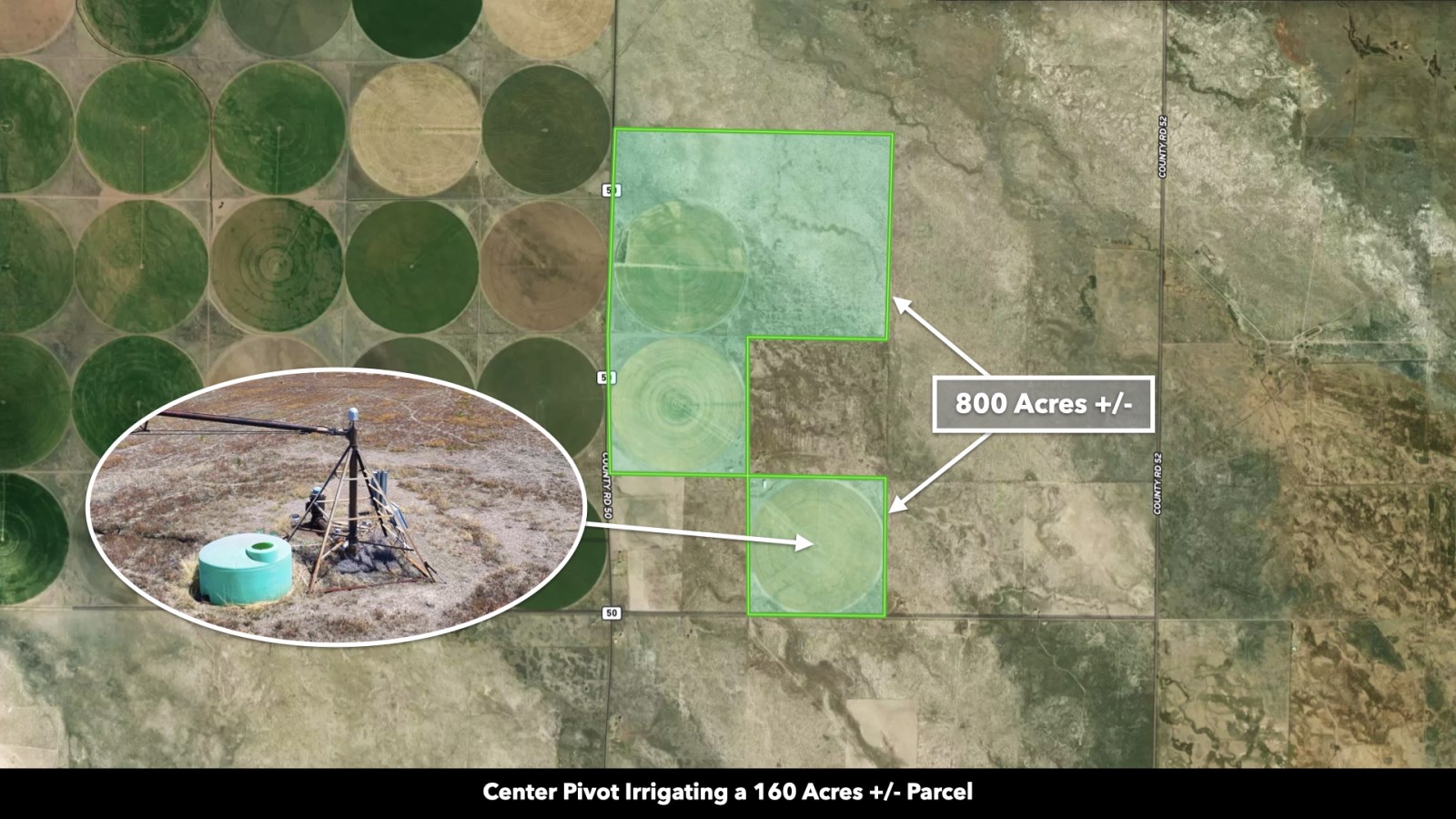 160 Acres are Irrigated with a Center Pivot and there is 640 Acres of Pasture Land.