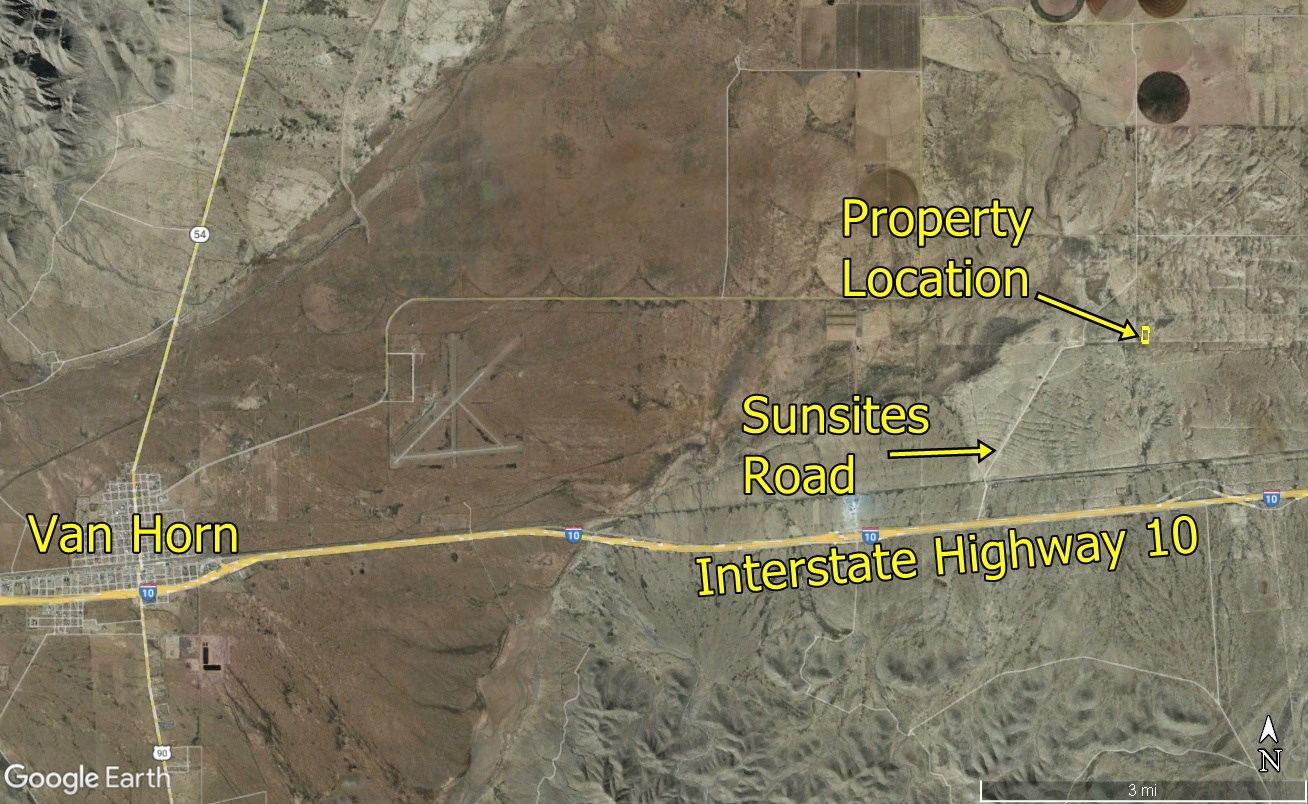 From Van Horn, go east on Broadway 7.5 miles.