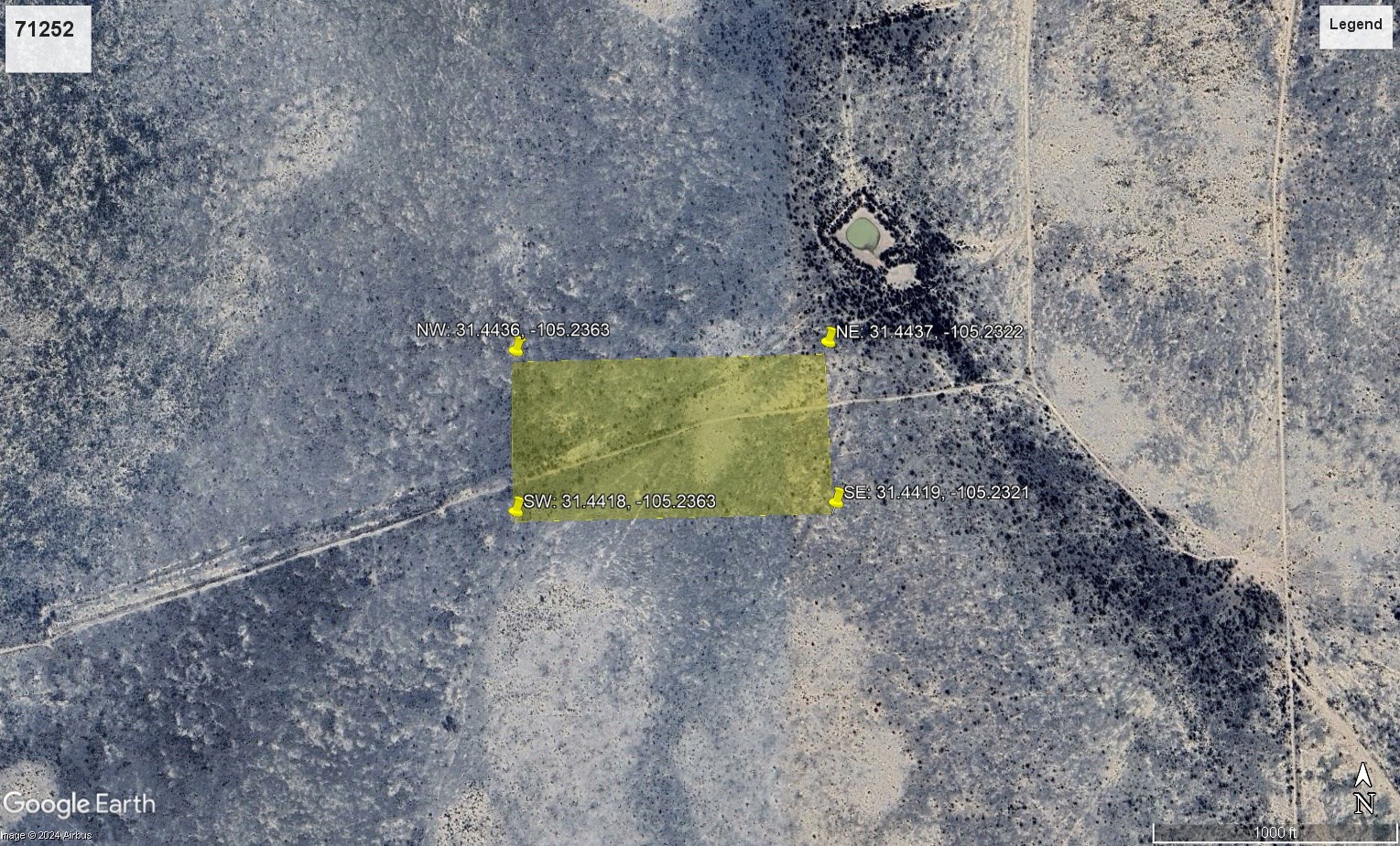 Legal Description: For Tract 29, Sierra Prieto, Unit 8 A 20.00 Acre Tract OUT OF Section 19, Block 34, Public School Lands being a tract of land out of Section 19, Block 34, Psl, that lies in Hudspeth County, Texas, and being more particularly described as: Beginning: At a point 648.80 feet N 89° 54' 45.8" W from the Southeast Corner of said Section 19 for the Point of Beginning; Thence: N 00° 33' 13" W for 648.80 feet to the northwest corner of the tract; Thence: N 89° 17' 34" E for 1307.42 feet to the northeast corner of the tract; Thence: S 00° 35' 25” W for 648.56 to the southeast corner of the tract; Thence: S 89° 17' 29" E for 1307.87 feet to the Point of Beginning at the southwest corner of the above referenced tract and containing 20.00 acres of land, more or less. Subject to all easements of record. The foregoing description is based upon maps and data provided by the owner, the Texas General Land Office and the Texas Railroad Commission and has not been surveyed as of this date.