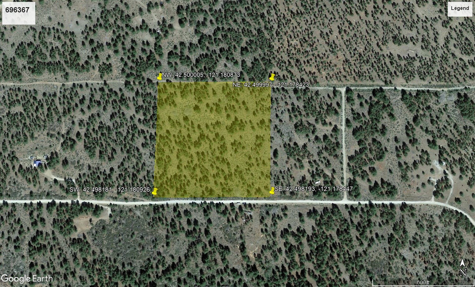 Legal Description: The NEl/4 OF The NWl/4 OF The NEl/4 OF Section 33, Township 35 South, Range 13 East OF The Willamette Meridian, Klamath County, Oregon: More Particularly Defined As Follows: Beginning AT AN Iron PIN Located ON The Southwest Corner OF Lot 4, Block 13, Tract NO. 1010, First Addition TO Ferguson Mountain Pines, A Recorded Plat IN Klamath County, Oregon, Thence North 89°44'23" West Along The North Line OF Packsaddle Circle As Dedicated IN Said Subdivision 660.0 Feet, More OR Less, TO ITS Intersection With The West Line OF The NEl/4 OF NWl/4 OF NEl/4, Thence North Along The Said West Line 660.0 Feet, More OR Less, TO The North Line OF Section 33, Said Township And Range, Thence South 89°42'08" East, Along The Said North Line 660.0 Feet, More OR Less, TO AN Iron PIN Located ON The Corner OF Said Subdivision, Thence South 01 °19'29" West, Along Said Subdivision Line 664.88 Feet TO The Point OF Beginning. Note: This Legal Description WAS Created Prior TO January 01, 2008.