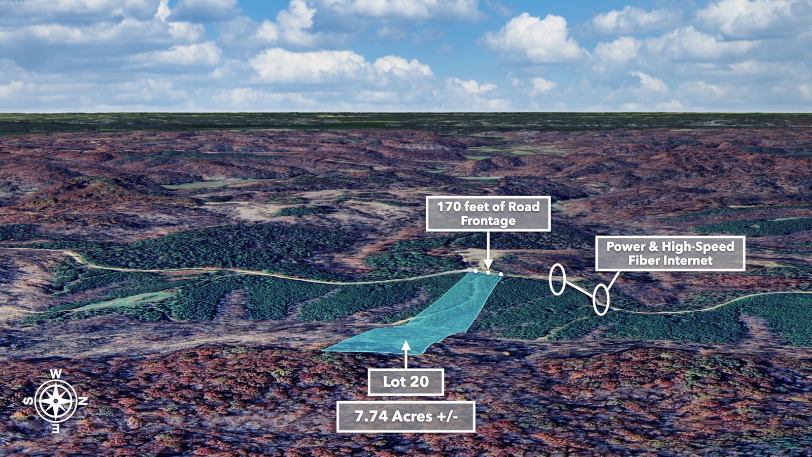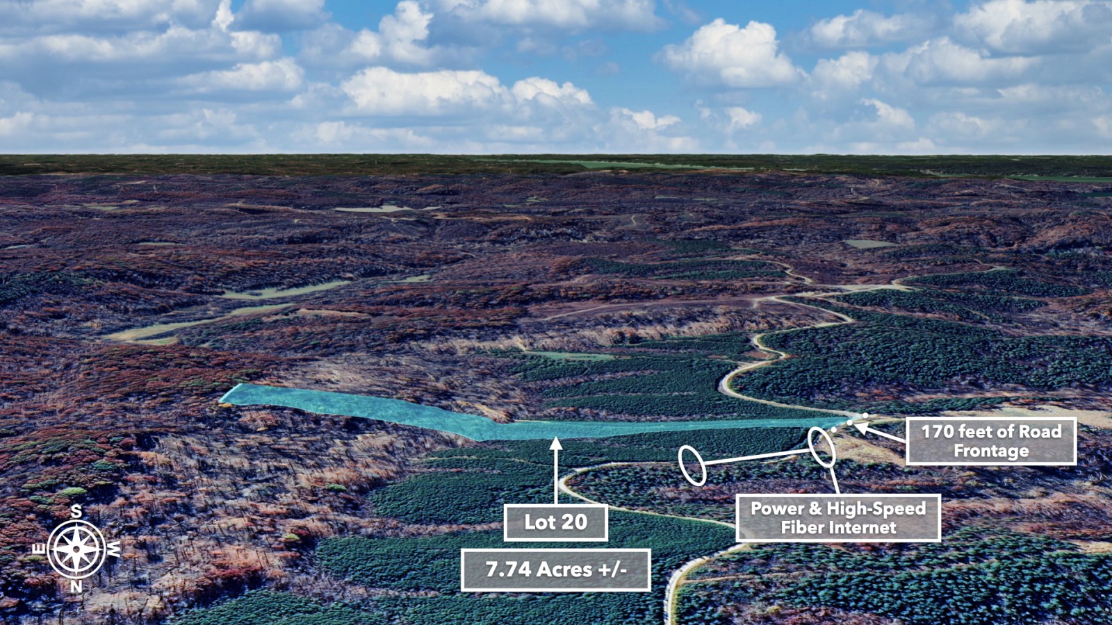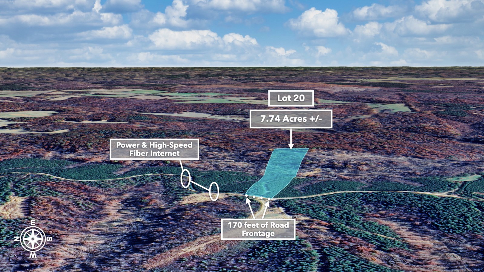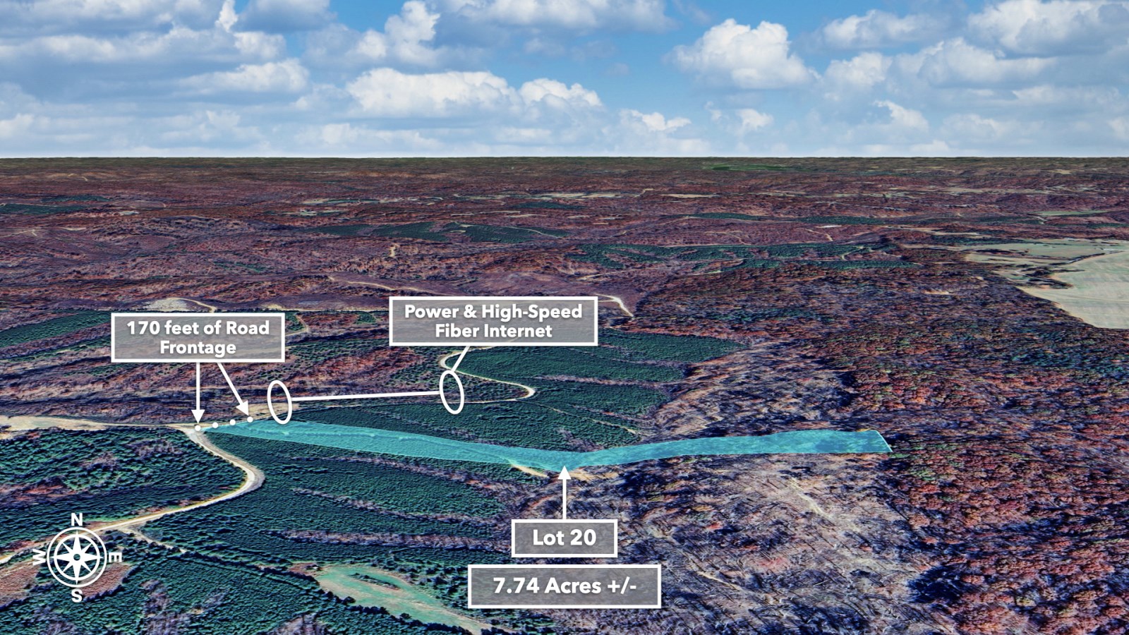 7.7 Acres with Road Access, Mature Trees, Power & High-Speed Fiber Optic Internet.