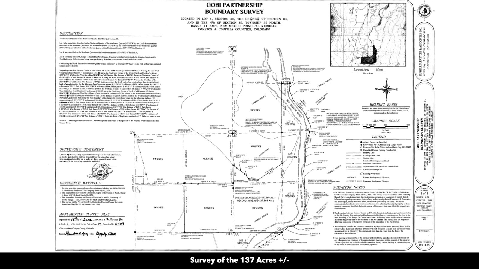 The Property borders BLM Land along the entire West & South boundary that is contiguous with over 1 Million Acres of Public Land that extends to the Carson National Forest & Rio Grande National Forest.