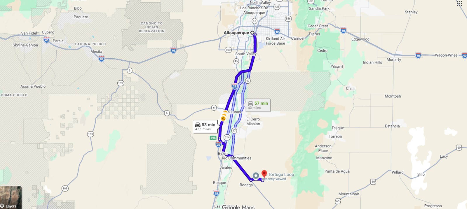 Continue on I-25BL. Take NM-47 S/Rio Communities Blvd to Mallette Dr/Palta Cir