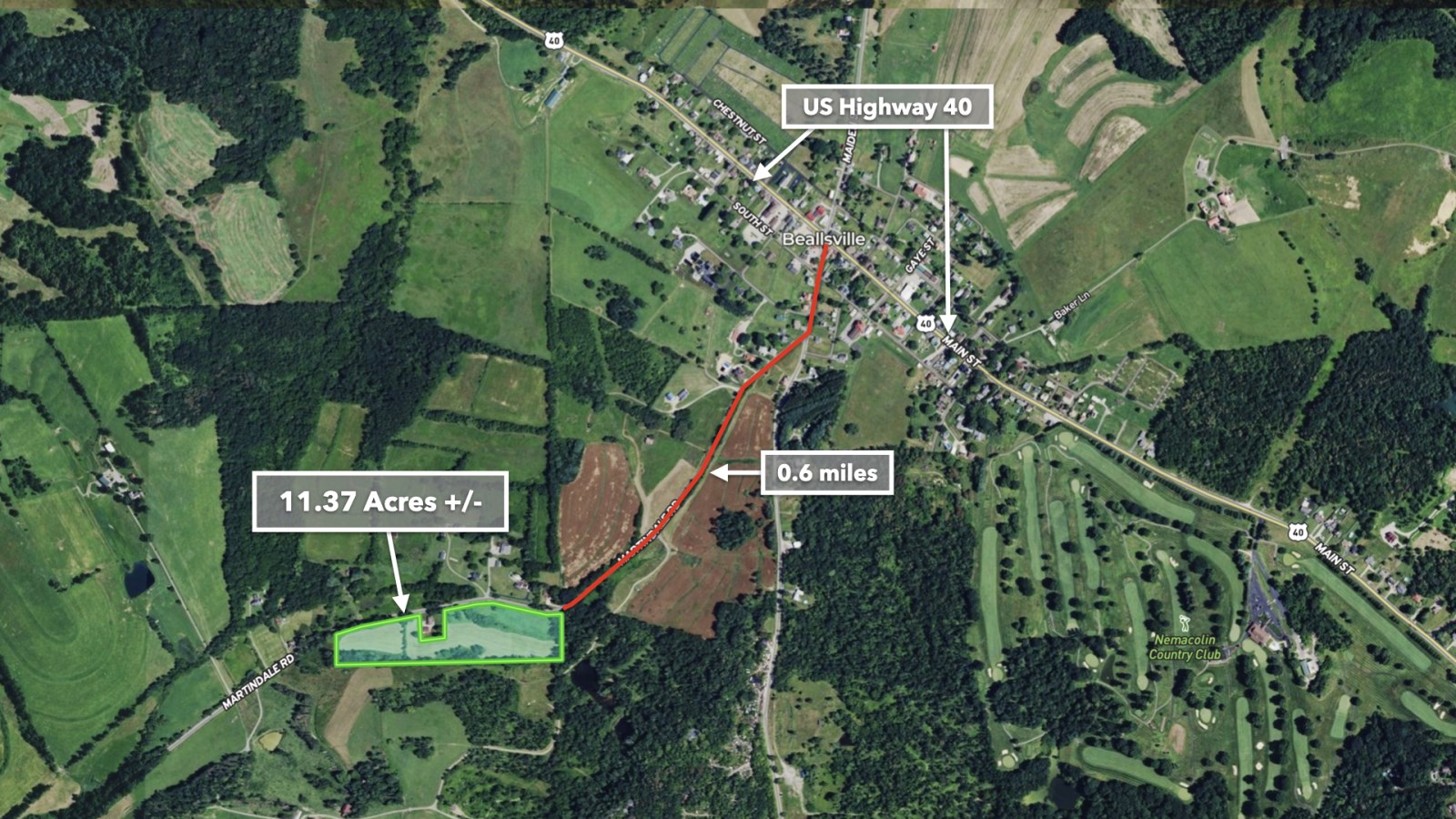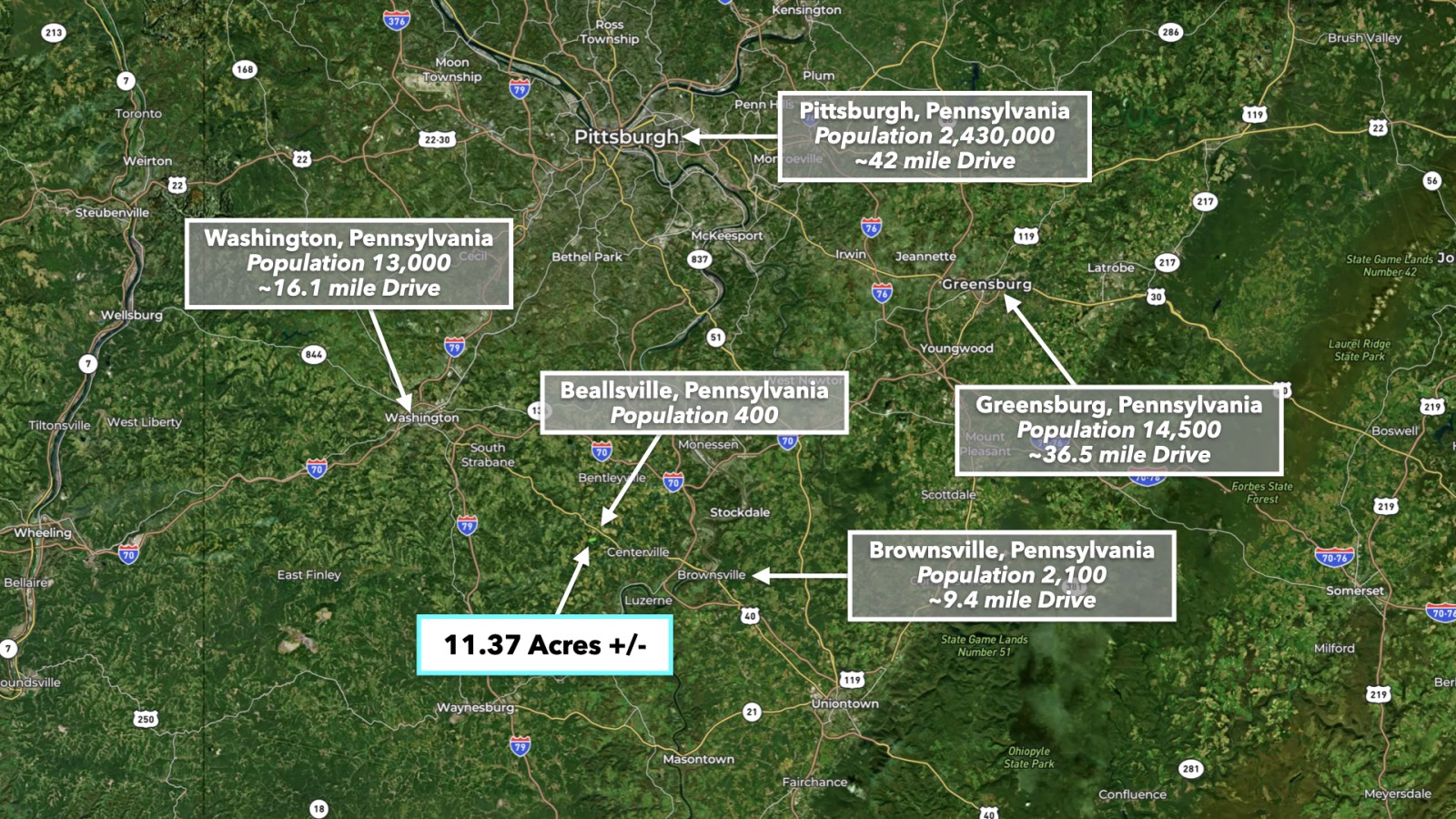 Tucked within the borough limits of Beallsville, this 11.37 Acres property offers a rare blend of usable open farmland and peaceful rural character. Located about 45 minutes south of Pittsburgh, it's close enough for commuting, dining, and culture-yet far enough to feel a shift in pace the moment you arrive. In southwestern Pennsylvania's countryside, mornings feel slower, evenings quieter, and the landscape does most of the talking.