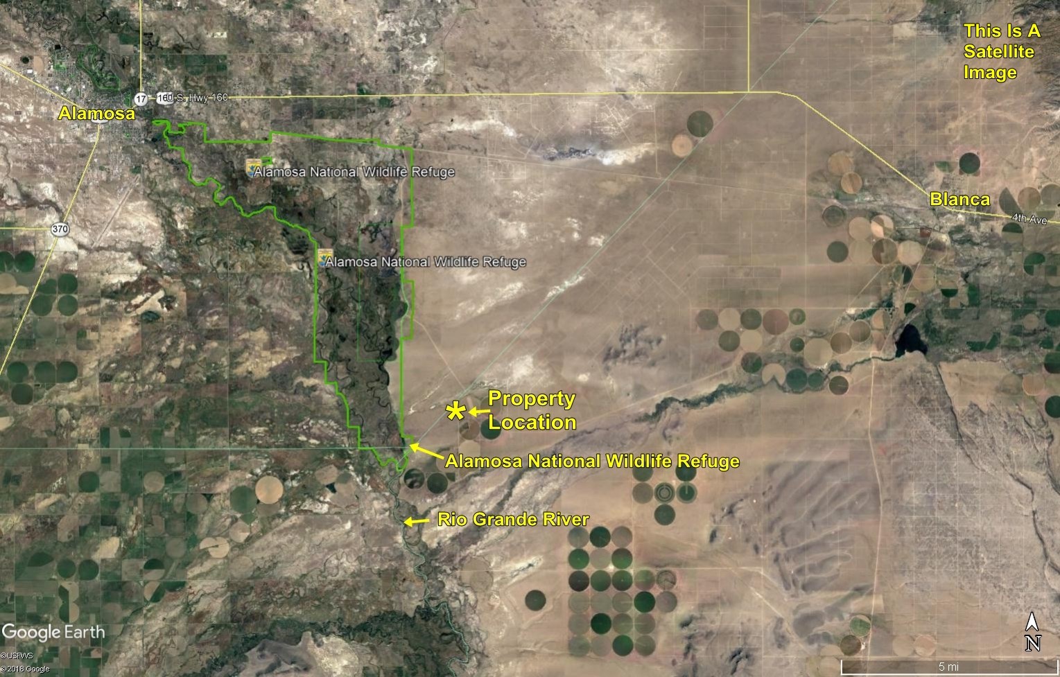 Just over 1 mile from Alamosa National Wildlife Refuge