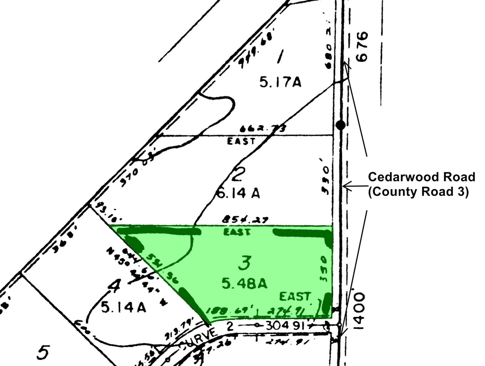 0.5 mile later Lot 3 will be on your right.