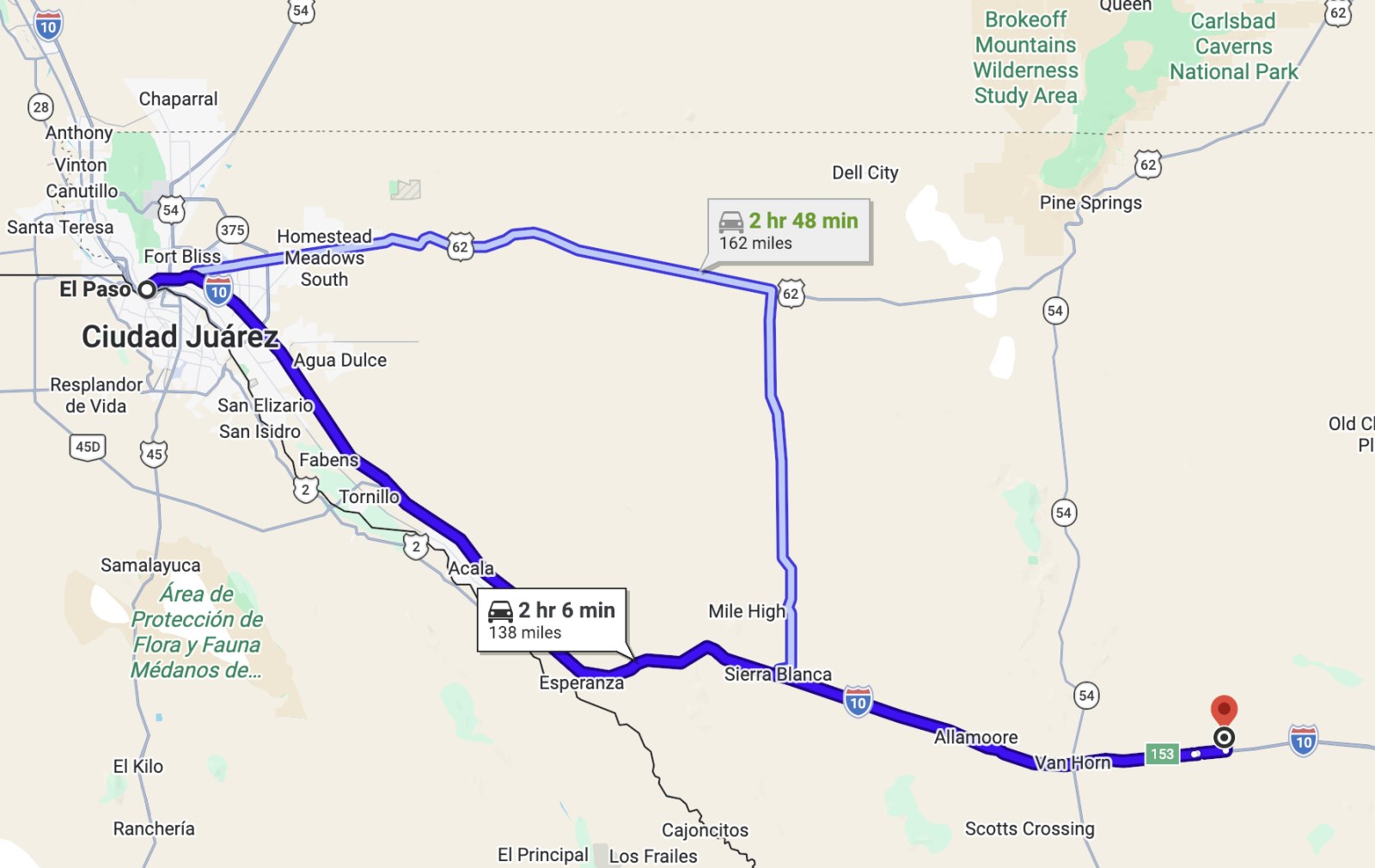 Follow I-10 E to Evergreen Rd in Culberson County. Take exit 153 from I-10 E