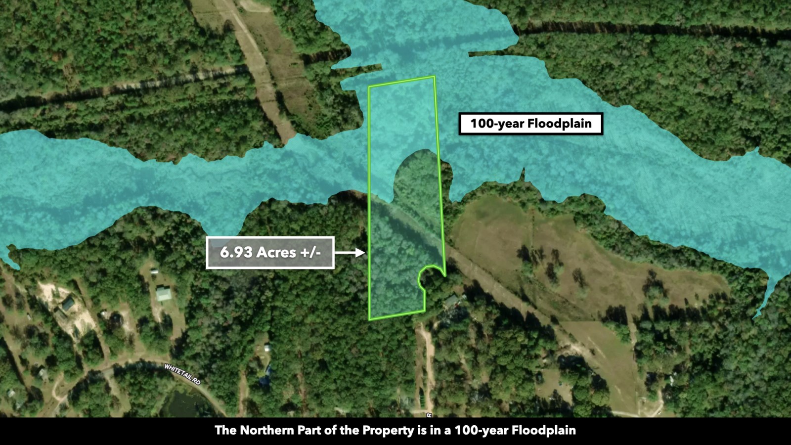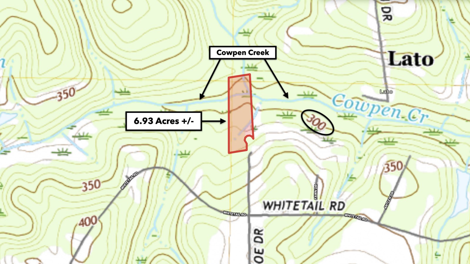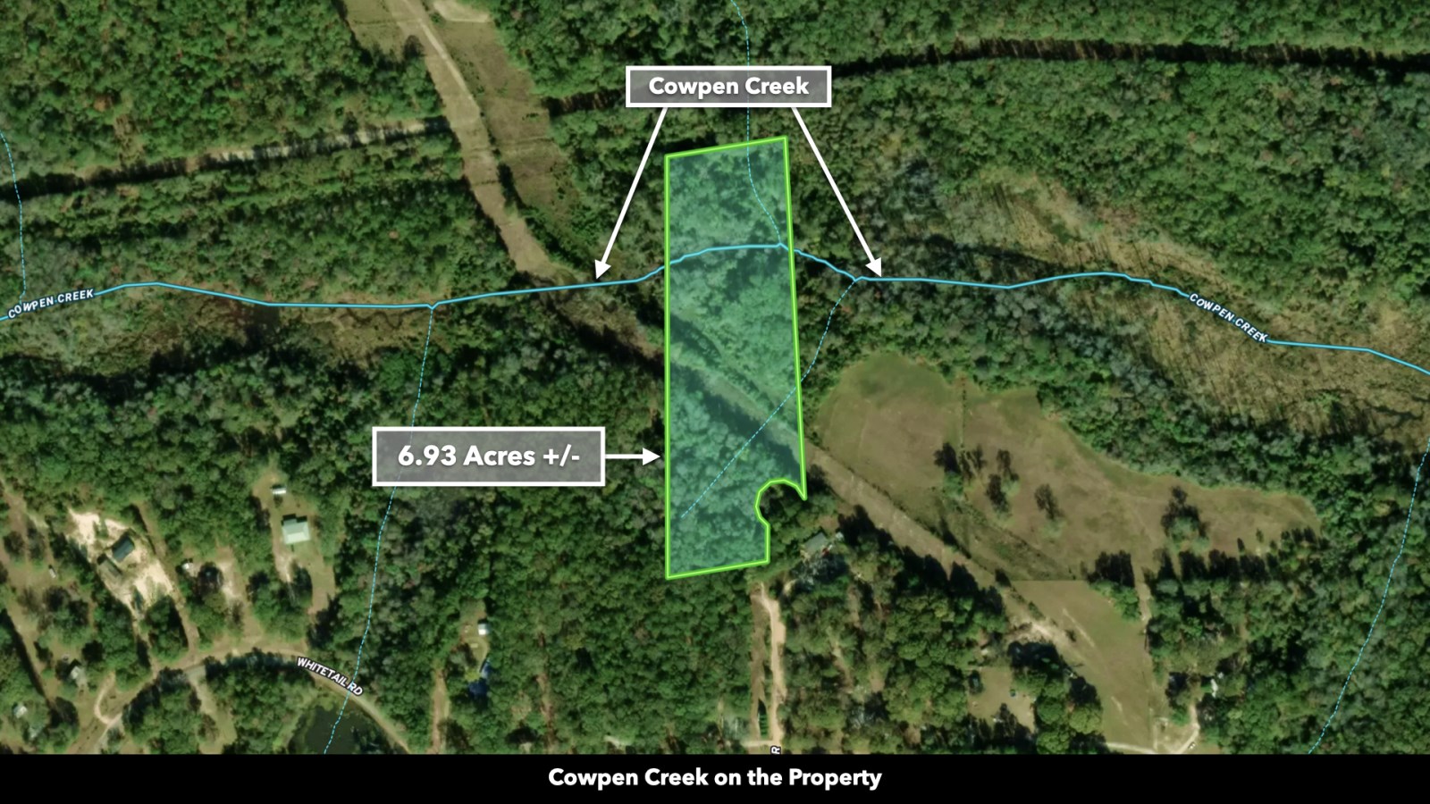 Cowpen Creek crosses the northern portion of the land, feeding into low wetlands that are part of a living creek system. This northern half lies within a 100-Year floodplain, shaping the property's character and making it especially appealing to buyers who value conservation, recreation, or a buffer of untouched nature rather than intensive development.