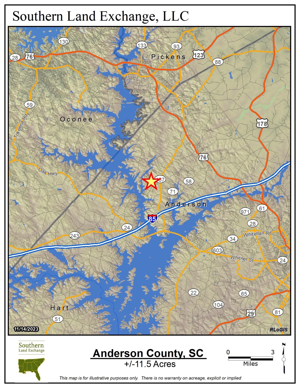 Discover 11.5 acres of peaceful country living in a prime location. Conveniently situated less than 15 minutes from Pendleton and under 5 minutes from Anderson, 6C and Clemson University, this beautiful tract also offers quick access to Interstate 85 at Exit 14-just 5 minutes away-making travel simple while maintaining a private, rural feel. The front portion of the property features naturally regenerated pine trees, while the remainder showcases mature hardwoods that provide shade, character, and excellent wildlife habitat. A free-flowing creek bordering the rear property line-creating a serene setting and natural beauty throughout. With multiple potential building sites, this property is ideal for your dream home, recreational retreat, or investment opportunity. Wildlife is abundant, offering excellent opportunities for nature enthusiasts and hunters alike. Outdoor recreation is right at your fingertips-the 18 Mile Creek boat launch is just 1½ miles away, providing quick access to the water for fishing and boating. This is a rare opportunity to own a versatile tract in an extremely desirable location. Don't miss your chance to make it yours.