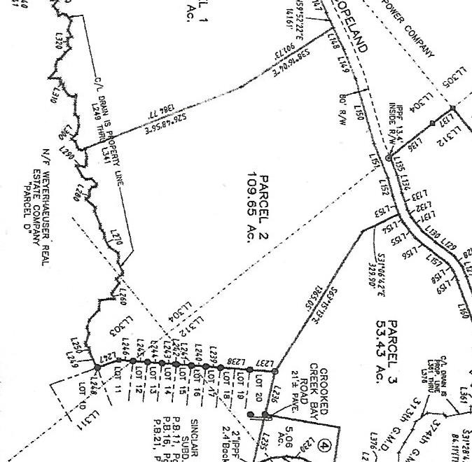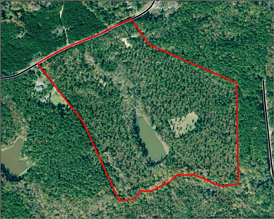 The property is mostly in mature pine timber with hardwood drains and a small stream across the back property line.
