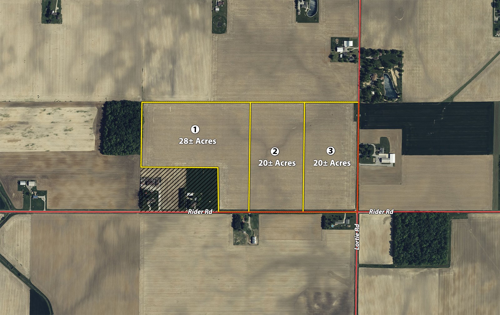 Tract 3: 20± ac Another level tillable tract with great soils and productive soils to produce a great yield. The soil type is consistent with a Blount Silt Loam and Pewamo Silty Clay Loam. With corner road frontage of approx. 1900 ft this would present many options for a new farm operation.