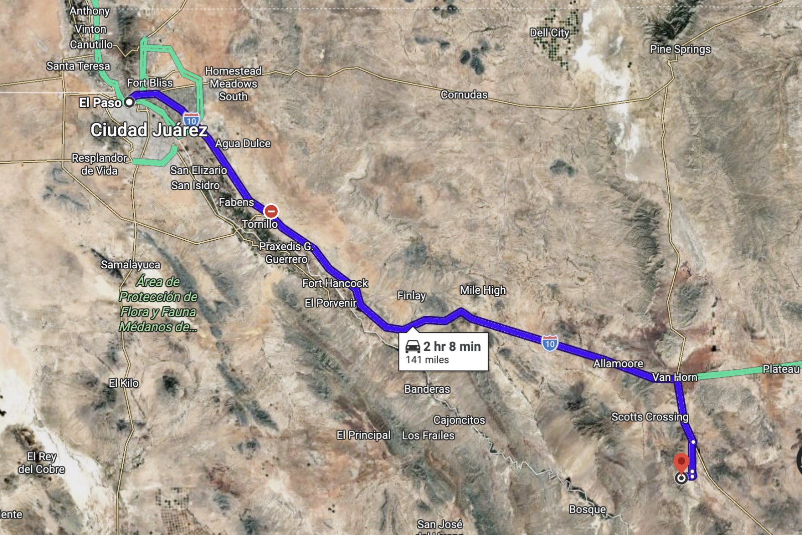 Follow I-10 E to Frontage Rd in Van Horn. Take exit 140A from I-10 E