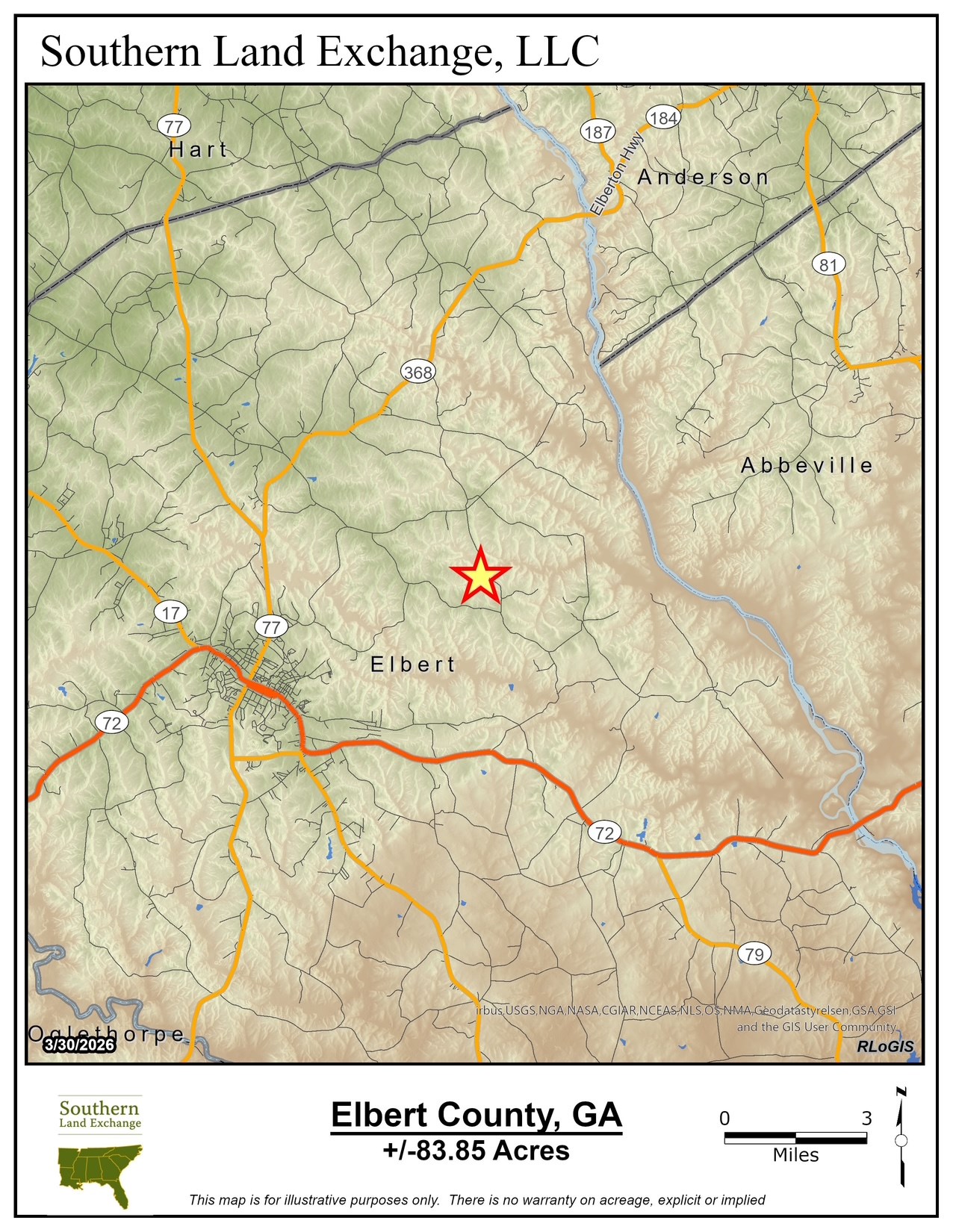 Southern Land Exchange is proud to present Three Stream Hunting Tract. Located on John Rucker Road in Elbert County, this 83.85 acre tract gets its name from the three streams running through the property. For those that love water features, this one is plentiful with over 3,500 ft of creek running from top to bottom. Even with all the water, there is very little flood / wetlands on the property, most of which is found at the creek crossing and north access point along John Rucker Road. The property is surrounded by other large acreage tracts, along with the excellent water source creates a great environment for wildlife to thrive. This property is unique in that power has already been run to a great location for a future homesite. The homesite location is open, has excellent access, is gated and has a stick built raised foundation already onsite that could be utilized and finished as a small cabin or storage building. Along the 1,500 ft of frontage on John Rucker Road there are two access points, one on the north end of the creek crossing and one on the south end. This allows for easier navigation around the creeks. The property is made up of a mix of pines and hardwoods, both mature and small growth. Located only 14 minutes from Elberton and under an hour from Athens. Call Travis Ebbert for more information at.