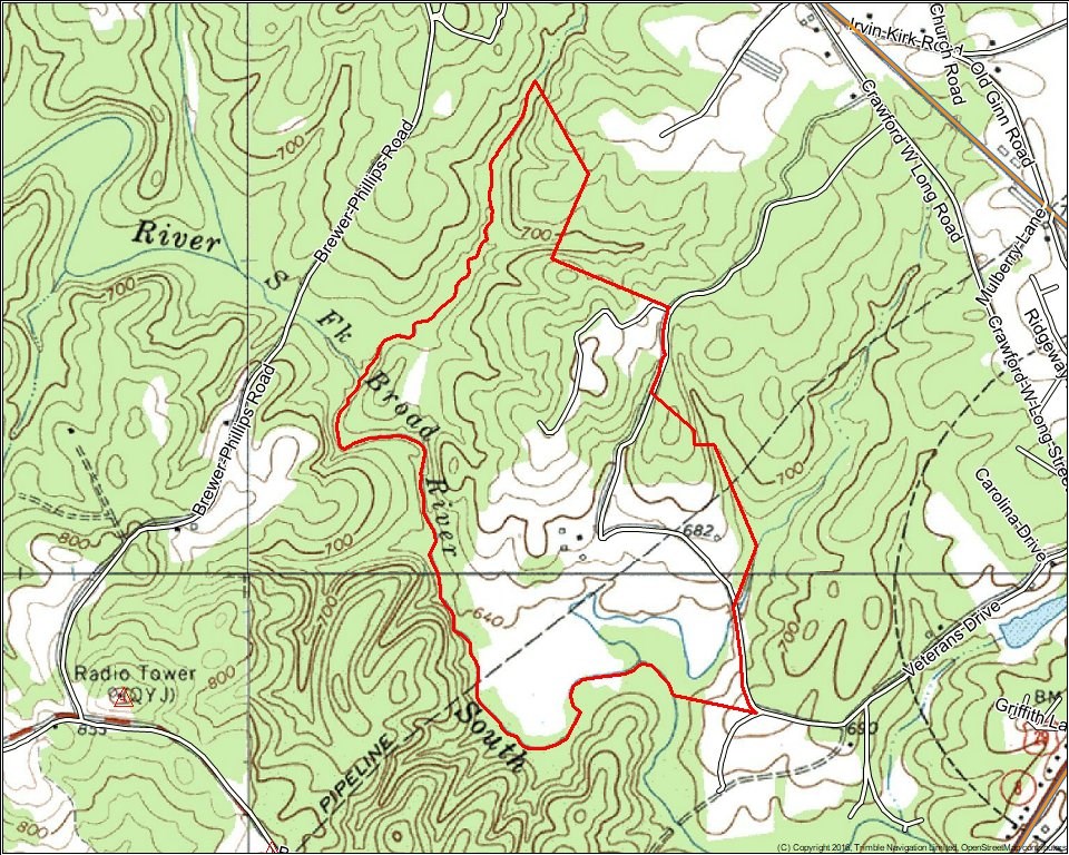 The property has long frontage on the South Fork of the Broad River, several small ponds, and several small streams.